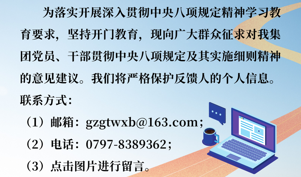 | 7 | 贛州市國(guó)投集團(tuán)黨委黨建工作領(lǐng)導(dǎo)小組召開會(huì)議部署深入貫徹中央八項(xiàng)規(guī)定精神學(xué)習(xí)教育工作 | 2025-03-26 |